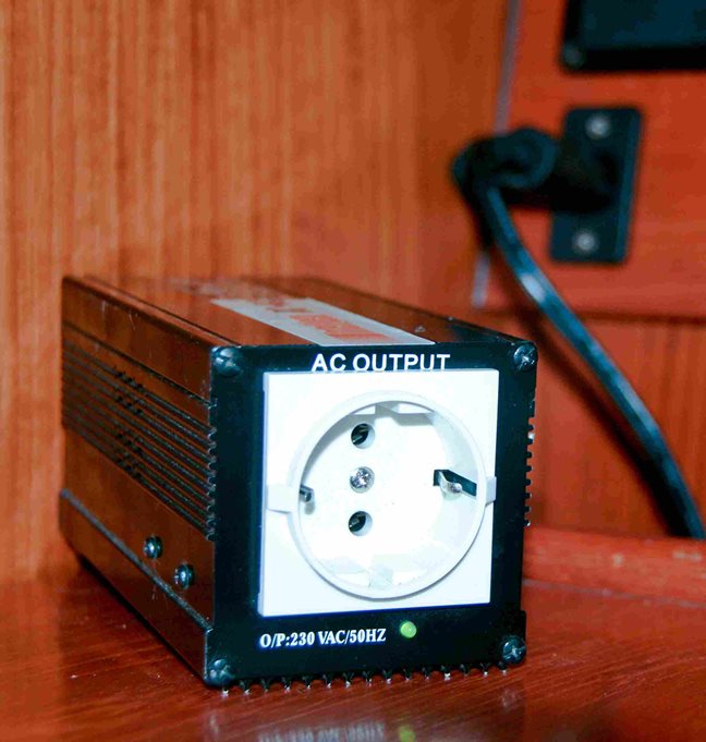 Ein Traum wird wahr! Denn inzwischen sind kleine Wechselrichter=Umformer=Inverter, die aus den 12 Volt der Bordbatterie häusliche 220 Volt generieren, schon zum kleinen Preis zu haben. Inverter mit „sinus-ähnlicher“ Ausgangsspannung gibt es für Leistungen von 100 Watt bis hinauf zu mehreren KW schon ab etwa 25 €.