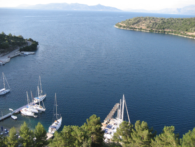 15 Seemeilen Segeln (ca. 30 Kilometer) zur großen Höhle von Mourtos ist angesagt. Der Einschnitt kann lediglich vom Wasser aus erreicht werden und er ist so groß, dass eine ganze Yacht darin Platz hat – eine Herausforderung an den Mut und die Manövrierkünste der Skipper.